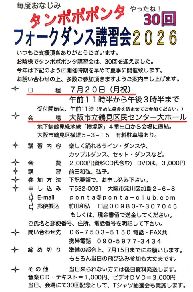2026/07/20 タンポポポンタ フォークダンス講習会2026