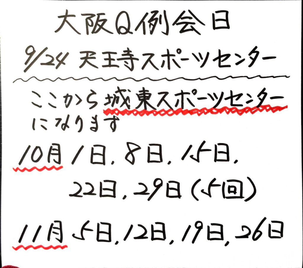 お知らせ/予定お知らせ予定表明石Q例会(~2025/12)大阪Q例会(~2025/11)シャルマン例会(~2025/12)例会会場サンライフ明石 天王寺スポーツセンター 須磨体育館 常盤アリーナ Views: 1776
