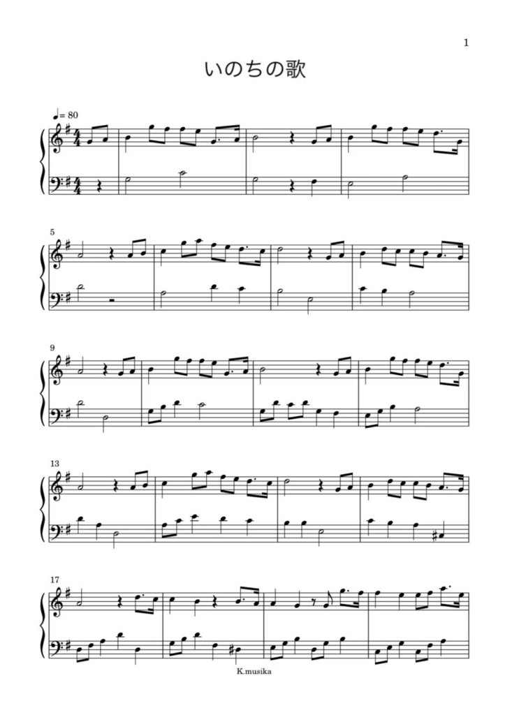 「いのちの歌」(竹内まりや)の基本コード進行は、キーGを基調とした美しいモーダルな流れで、感情の起伏を丁寧に描いています。 以下に代表的なセクションのコード進行を示します。