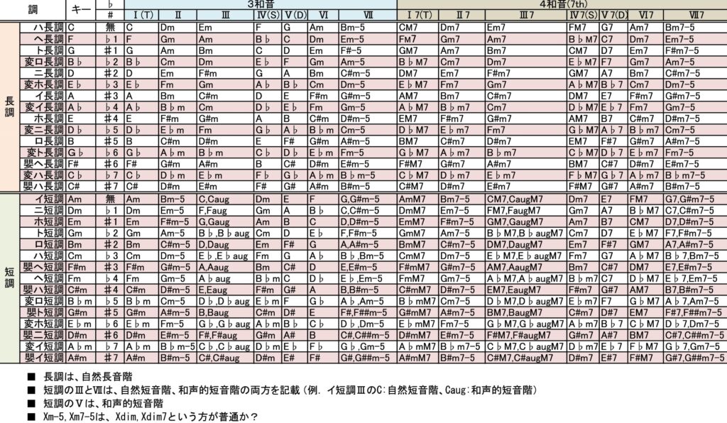 - 転調やモーダルインターチェンジを行う際は、この表を使って共通音や差異を確認できます。