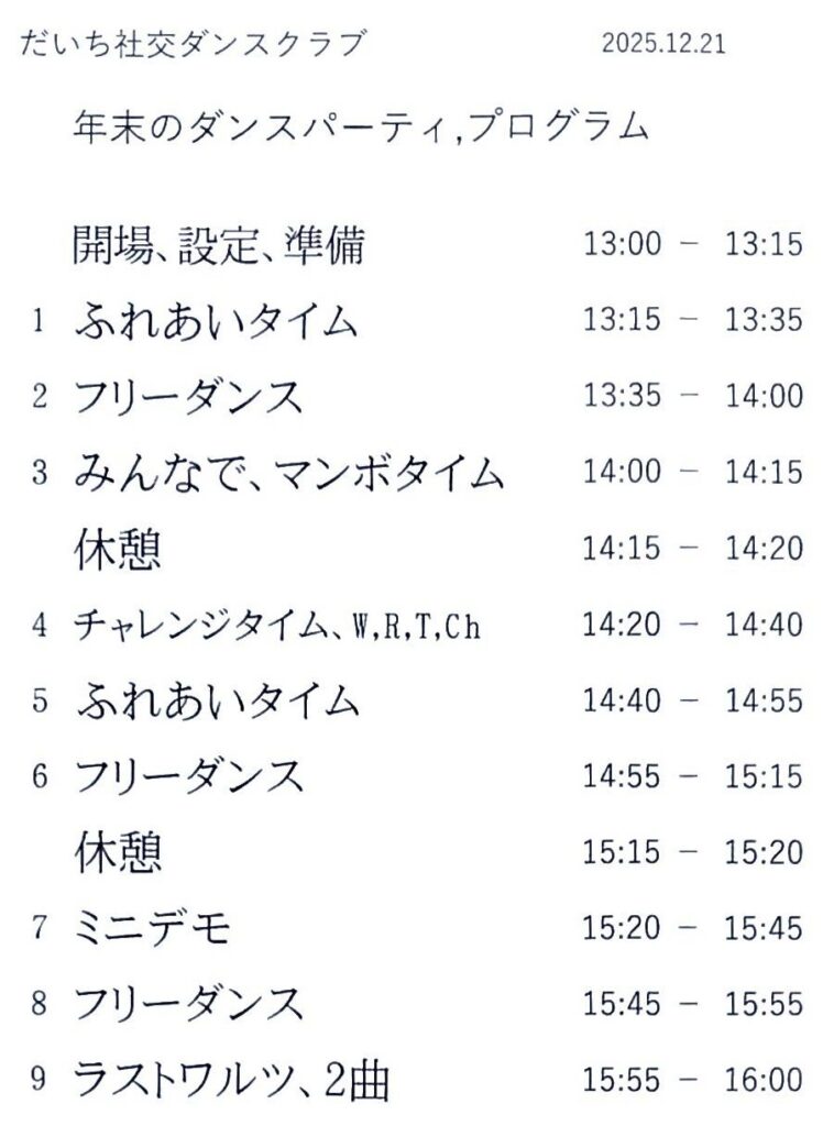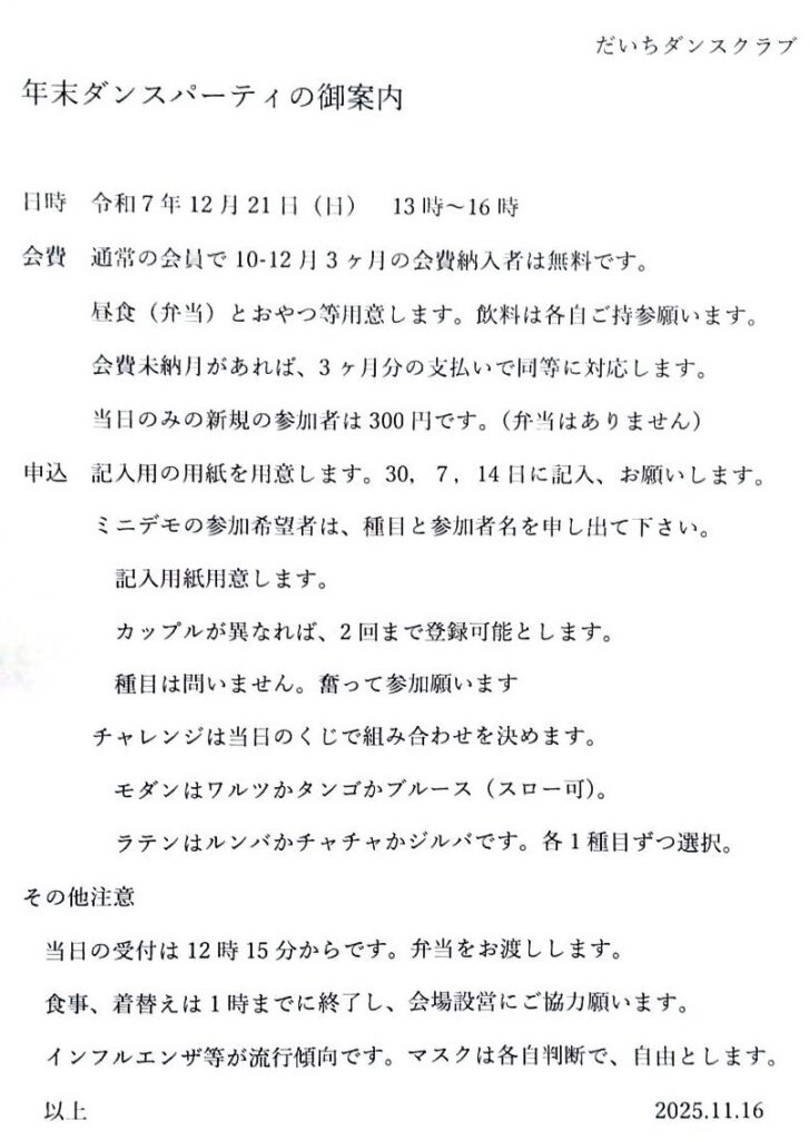 2025/12/21 だいち社交ダンスクラブ 年末ダンスパーティー