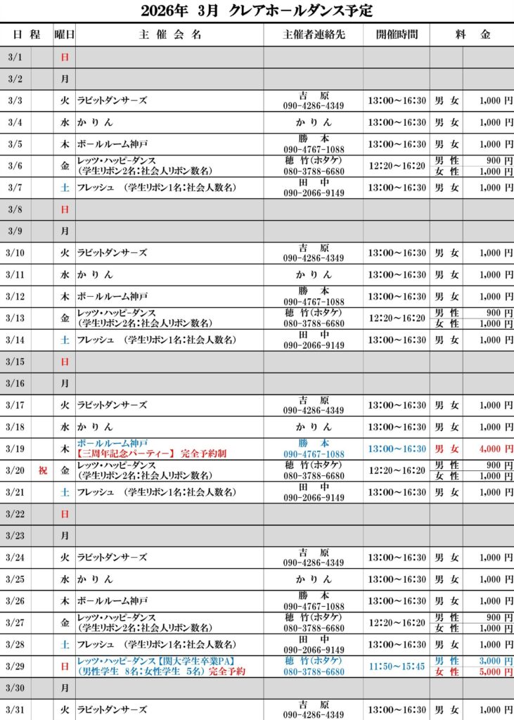 2026/03 クレアホール( 予定)