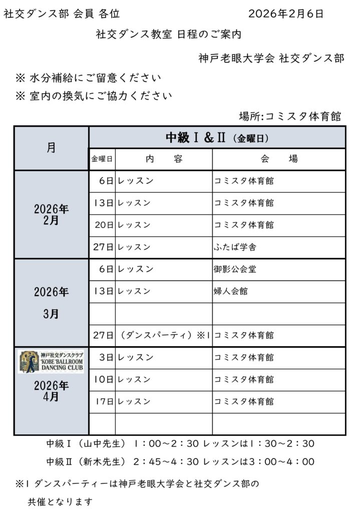 2026/04 神戸社交ダンスクラブ(旧 老眼)例会(予定)