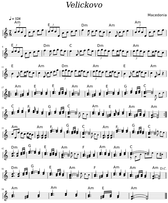 (コメント):「ベリチコヴォ(Velickovo)」は、北マケドニアの伝統的なフォークダンスで、7/8拍子のリズムに乗って踊る力強くリズミカルなラインダンスです。