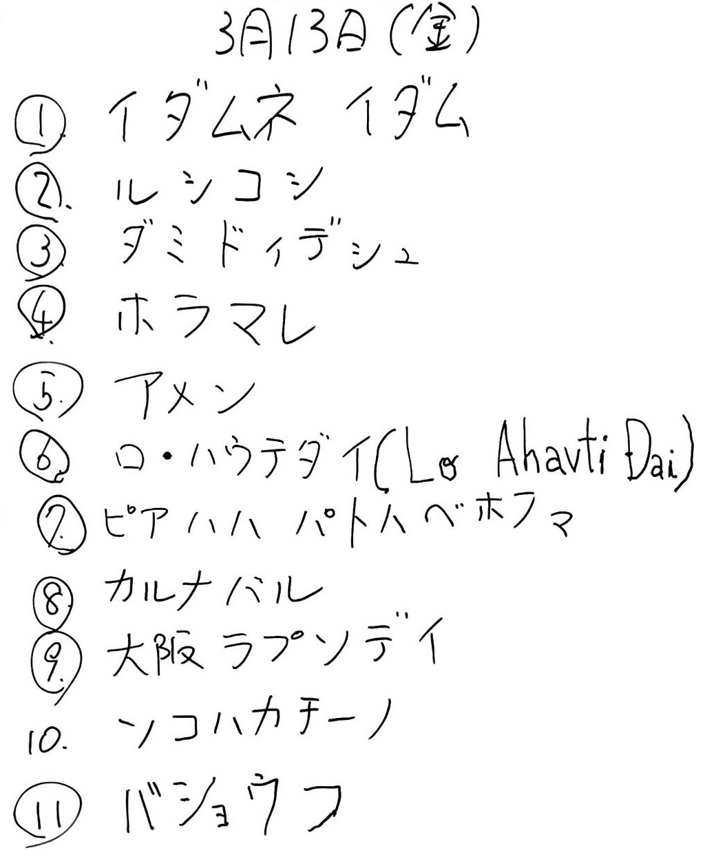 以下の曲を練習しました
